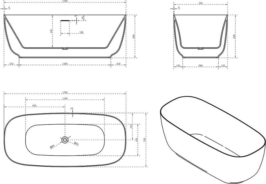 Ванна отдельностоящая Vincea 170x75 см VBT-631, цвет белый. В стандартную комплектацию входит сифон с гидрозатвором для устранения неприятных запахов.