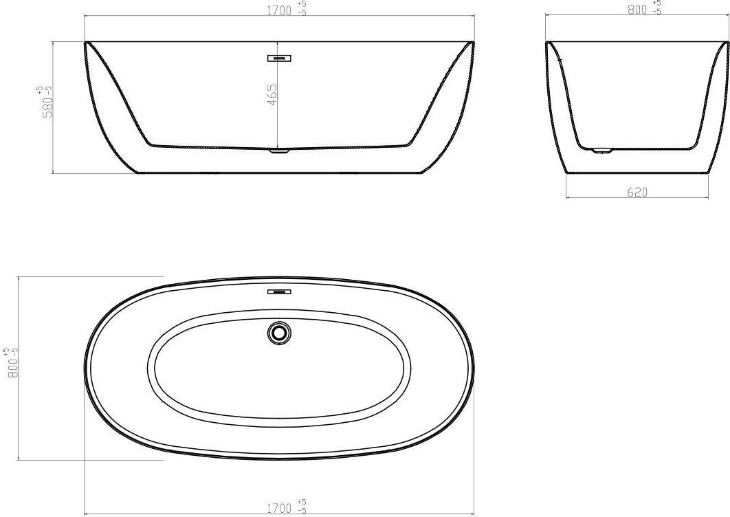 Ванна отдельностоящая Vincea 170x80 см VBT-205, слив-перелив в комплекте, цвет белый.