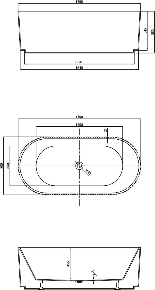 Ванна отдельностоящая Vincea 170x80 см VBT-426-1700 см, цвет белый. В комплекте щелевой слив-перелив.
