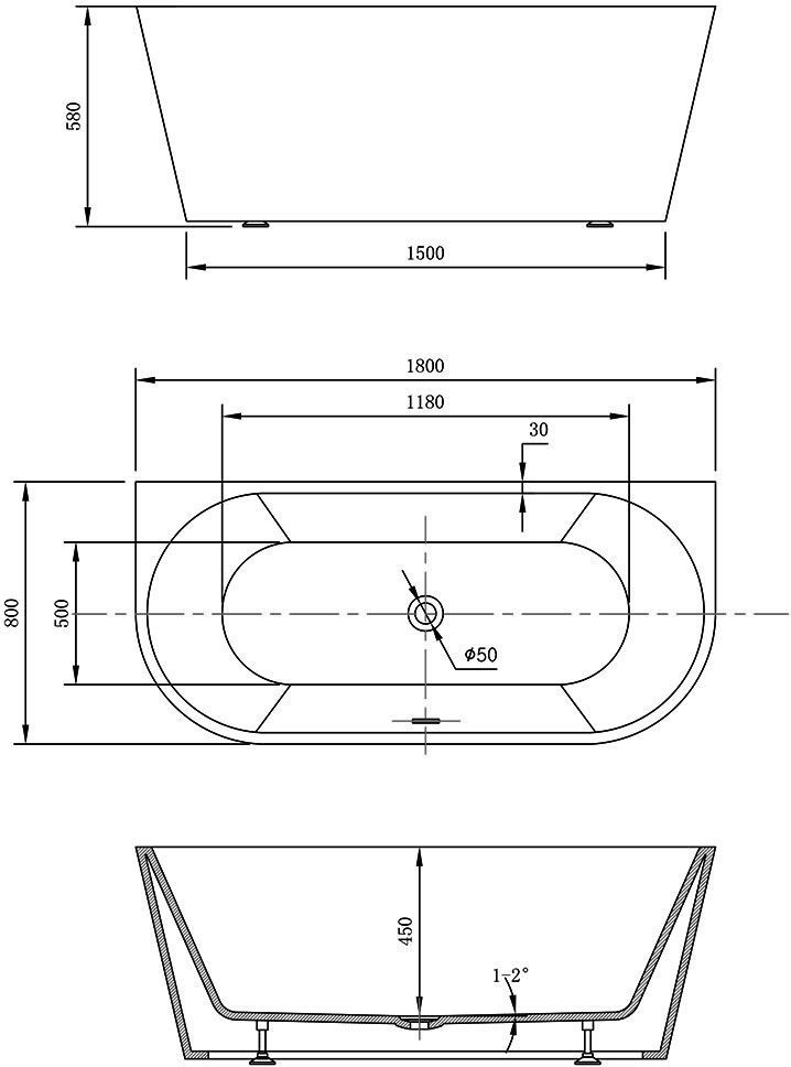 Ванна отдельностоящая Vincea 180x80 см VBT-421-1800, цвет белый. В стандартную комплектацию входит сифон с гидрозатвором для устранения неприятных запахов.