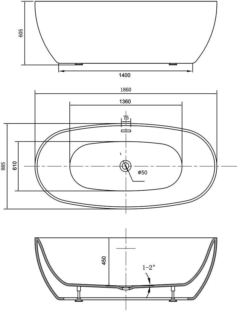 Ванна отдельностоящая Vincea 186x88 см VBT-405-1860, цвет белый. В стандартную комплектацию входит сифон с гидрозатвором для устранения неприятных запахов.