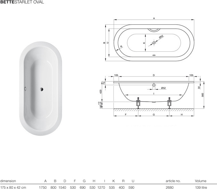 Характеристики ванна Bette (2680-000 PLUS)