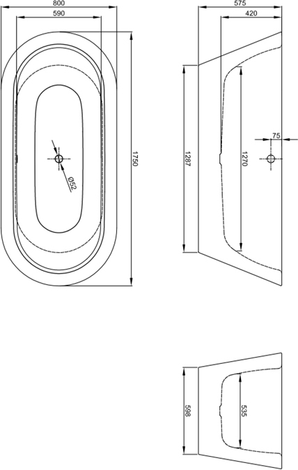 Ванна стальная отдельностоящая Bette Starlet Oval Silhouette с шумоизоляцией и экраном, размер: 1750х800х575 мм. Цвет белый.
