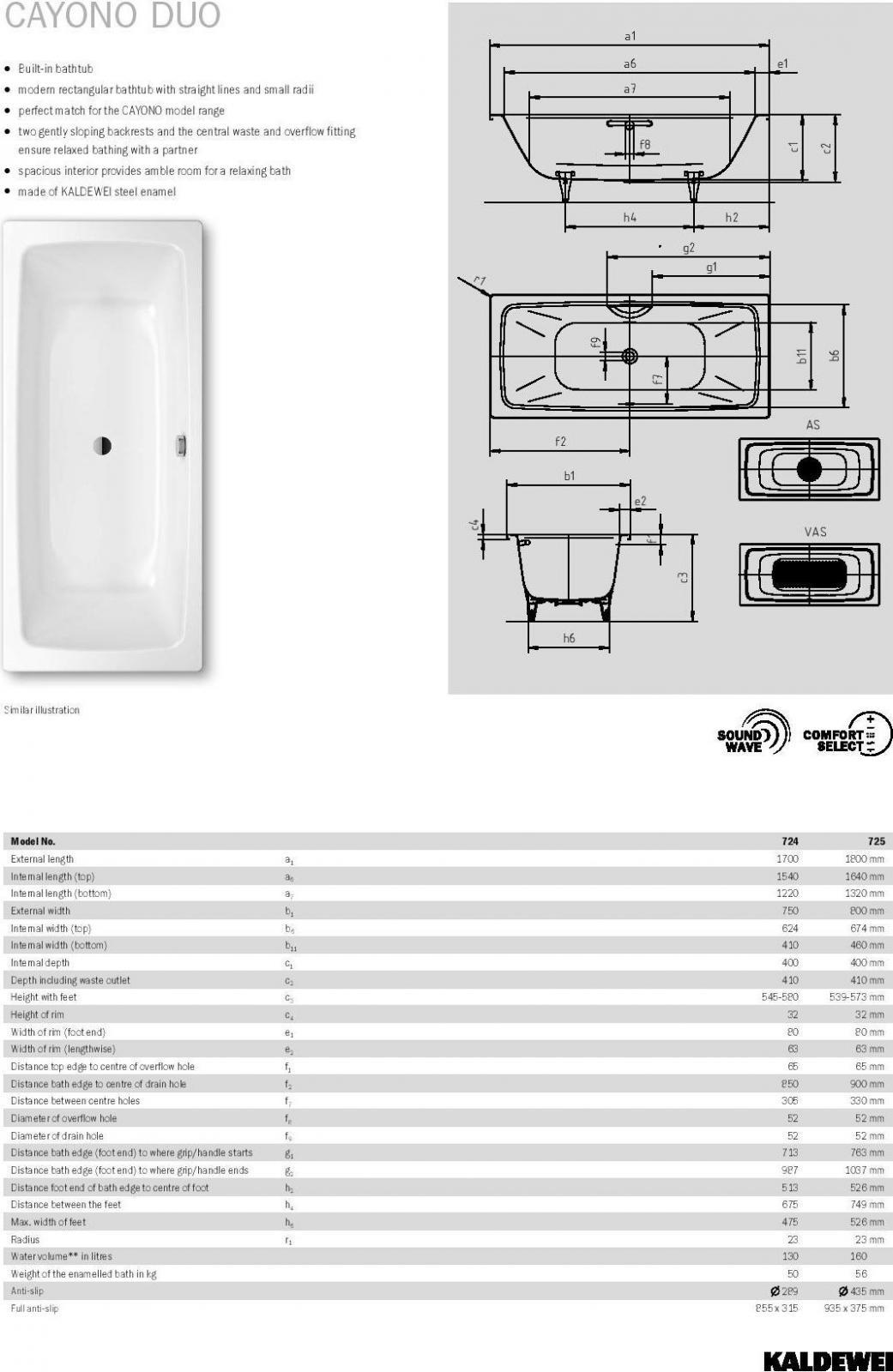 Ванна стальная Kaldewei Cayono Duo 170x75 см mod. 724 272400013001, грязеотталкивающее покрытие, цвет белый.