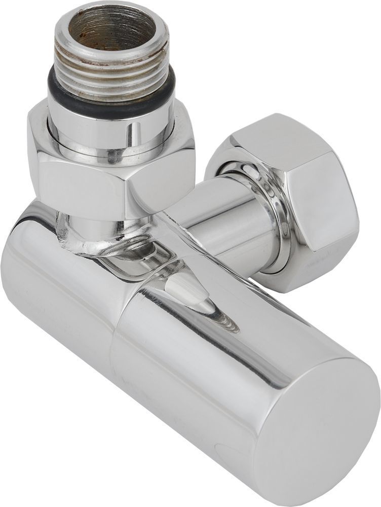 Вентиль запорный угловой левый Сунержа G 1/2" НРхG 3/4" НГ, материал нержавеющая сталь, цвет хром.