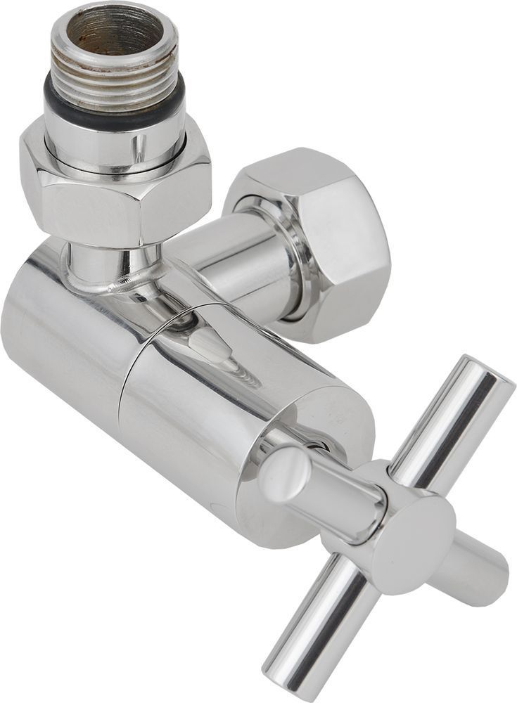 Вентиль запорный угловой левый Сунержа G 1/2" НРхG 3/4" НГ, материал нержавеющая сталь, цвет хром.