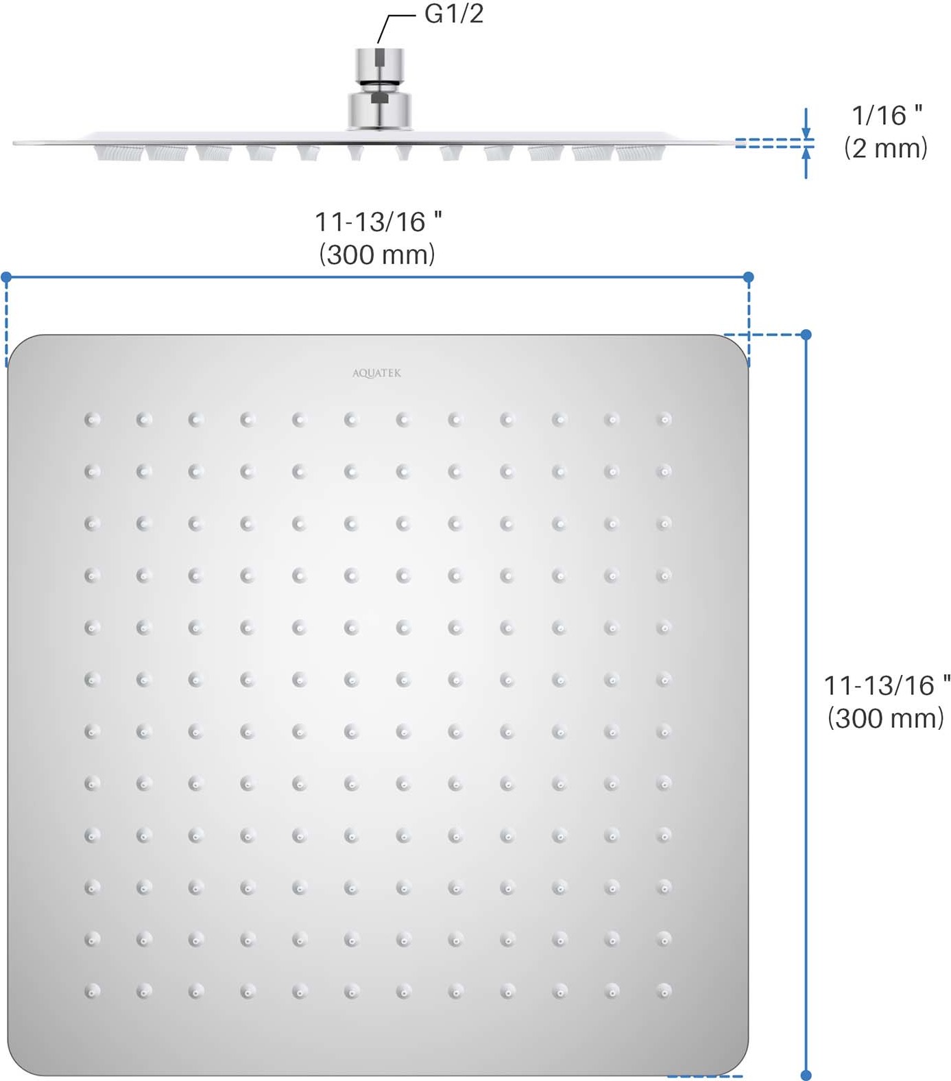 Верхний душ Aquatek 300x300 мм AQ2074CR