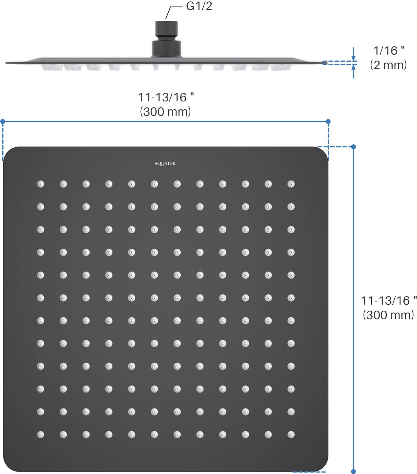 Верхний душ Aquatek 300x300 мм AQ2074MB, чёрный матовый