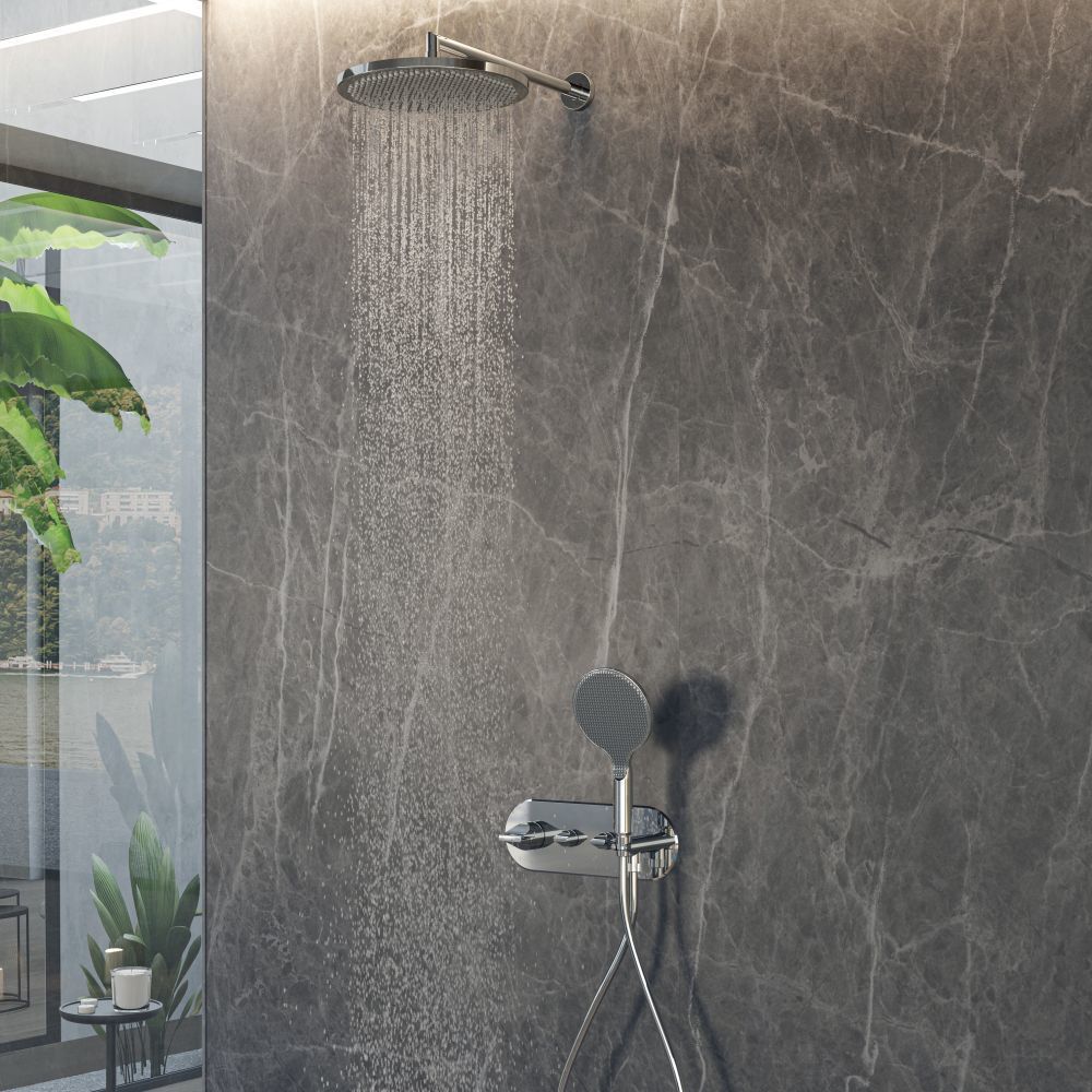Верхний душ Bossini Apice 280x280 мм H70430I.030 с настенным кронштейном 400 мм, 1 режим: широкая дождевая струя, цвет - хром.