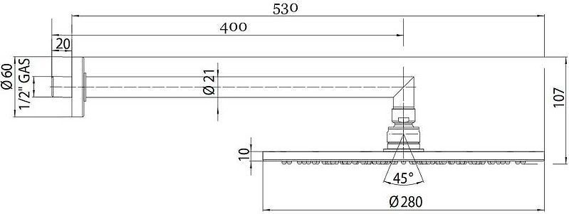 Верхний душ Bossini Cosmo 280x280 мм H70596I.030 с настенным кронштейном 400 мм, 1 режим, цвет хром.
