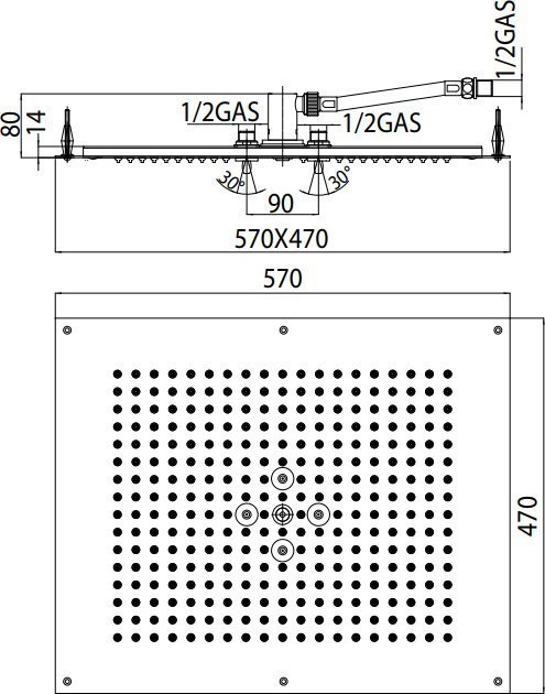 Верхний душ Bossini Dream-Neb 570x470 мм H38657.030, материал - латунь, цвет - хром.