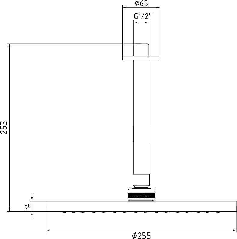 Верхний душ E.C.A. Myra 102145033C1EX 255x255 мм с кронштейном, материал - латунь, цвет - черный матовый.