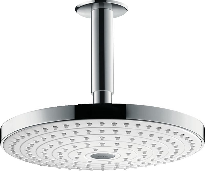 Верхний душ Hansgrohe Raindance Select S 240 2jet 26467400, 243х243 мм, с потолочным держателем 100 мм, материал - латунь, цвет - белый/хром.