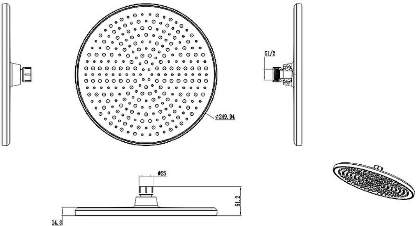 Верхний душ Raglo 250x250 мм R451.50.03, сатин золотой