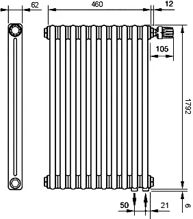 Вертикальный радиатор Zehnder Charleston 2180 490х1790 мм (10 секций) нижнее подключение, белый