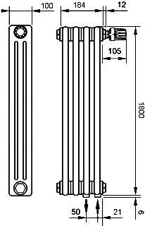 Вертикальный радиатор Zehnder Charleston 3180 210х1800 мм (4 секции) нижнее подключение