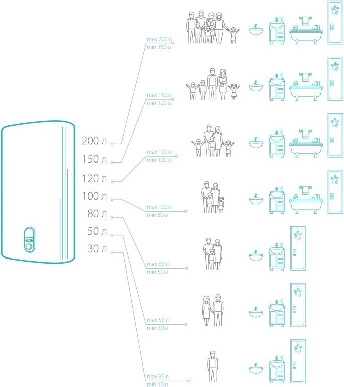 - Расчетное количество человек для принятия душа (при среднем расходе): 4