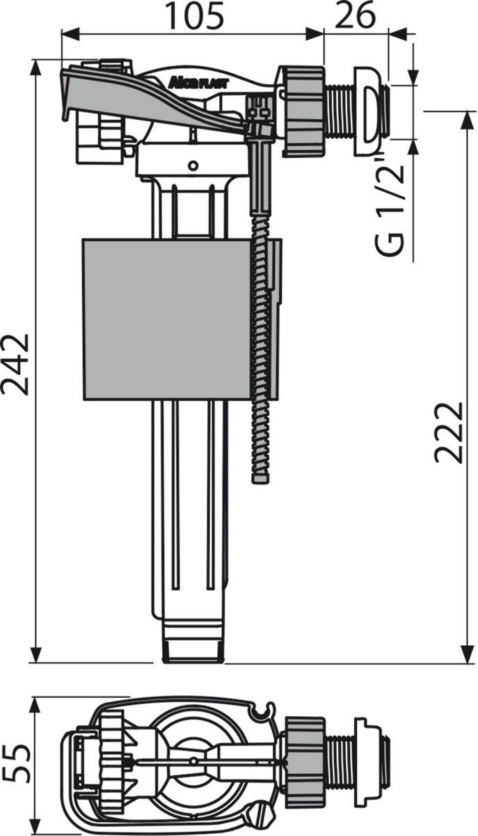 Впускной механизм Alcadrain A150P-1/2" с боковой подводкой для пластиковых бачков.