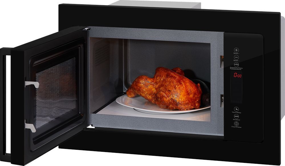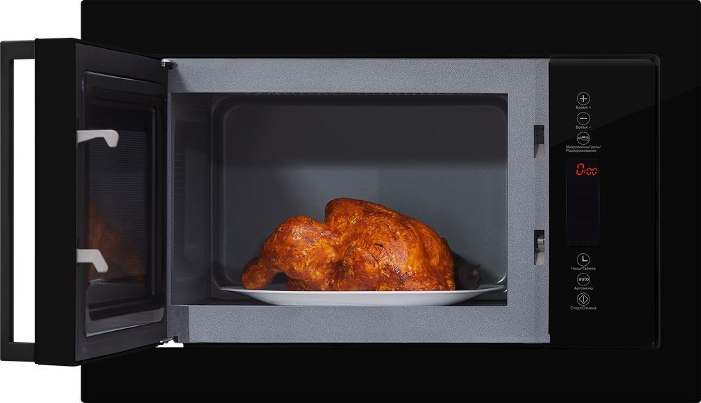 - Встроенный в микроволновую печь кварцевый гриль позволяет быстро и безопасно запечь мясные, рыбные и овощные блюда с золотистой корочкой. Благодаря высокой мощности нагрева 1200 Вт продукты обжариваются быстрее и получаются вкуснее, так как кварцевый ТЭН по своим свойствам наиболее достоверно передает эффект открытого огня.