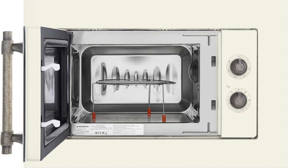 Встраиваемая микроволновая печь Maunfeld JBMO.20.5ERIB с грилем, фурнитура бронза, цвет слоновая кость.