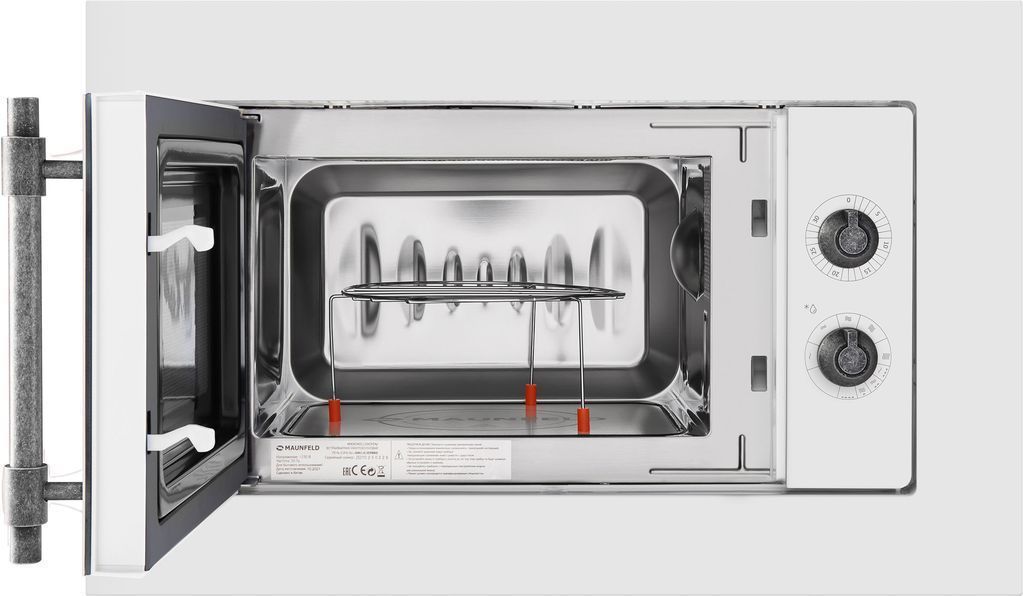 Встраиваемая микроволновая печь Maunfeld JBMO.20.5ERWAS с грилем, фурнитура состаренное серебро, цвет белый.