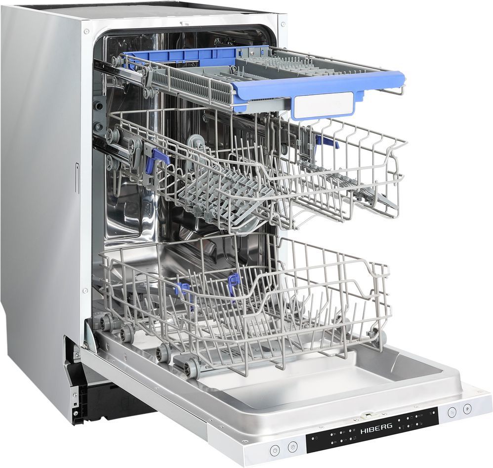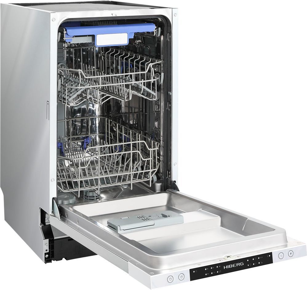 - Встраиваемая узкая посудомоечная машина HIBERG I46 1030- оптимальный выбор для малогабаритных кухонь и ежедневного использования. Модель характеризуется высоким классом энергоэффективности А+, низким уровнем шума, вместительностью до 10 комплектов посуды и 6 автоматическими программами. Панель с информационным дисплеем и электронным управлением позволит легко выставить нужный режим. Световые индикаторы на информационной панели укажут на необходимость заполнения емкости ополаскивателя и контейнера с солью.
