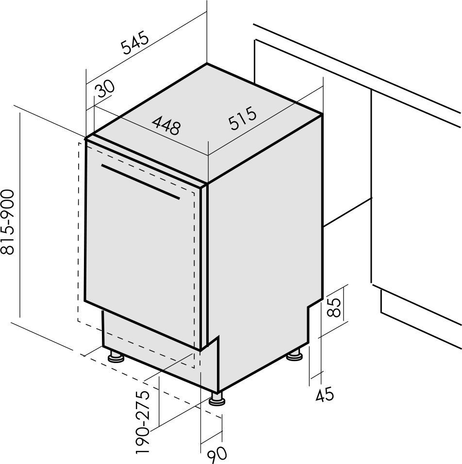 - Ширина встраивания, мм: 448