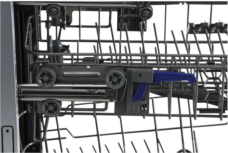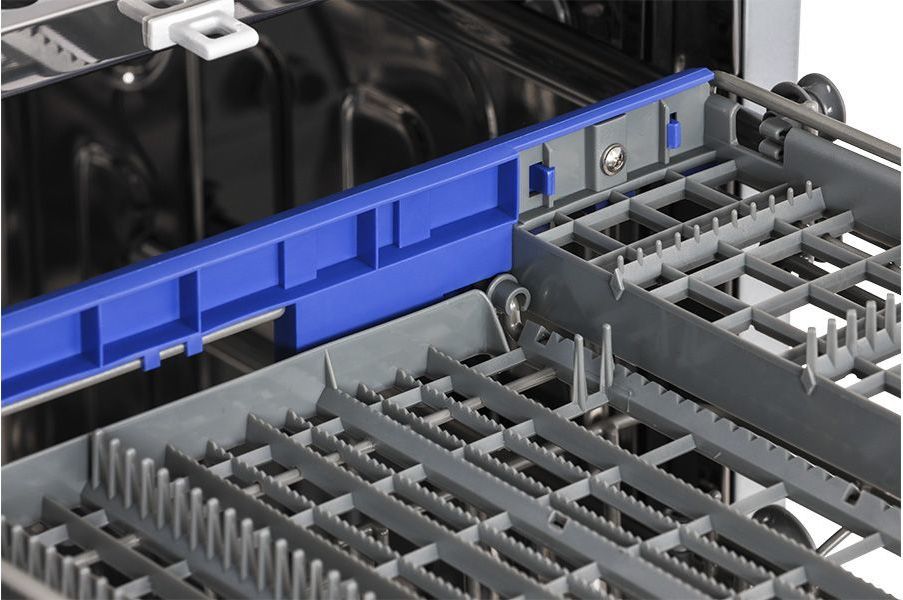- Для удобства очистки большого количества посуды в модели есть 3 уровня загрузки: верхняя корзина, нижняя и для столовых приборов.