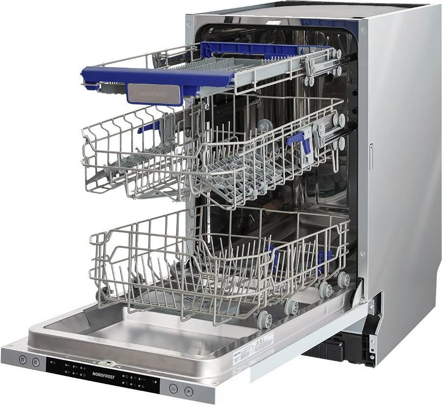 - Встраиваемая посудомоечная машина NORDFROST BI4 1063 шириной 45 см вмещает до 10 комплектов посуды. Техника позволит сэкономить время, обеспечит идеальную чистоту с минимальным потреблением воды и электроэнергии.