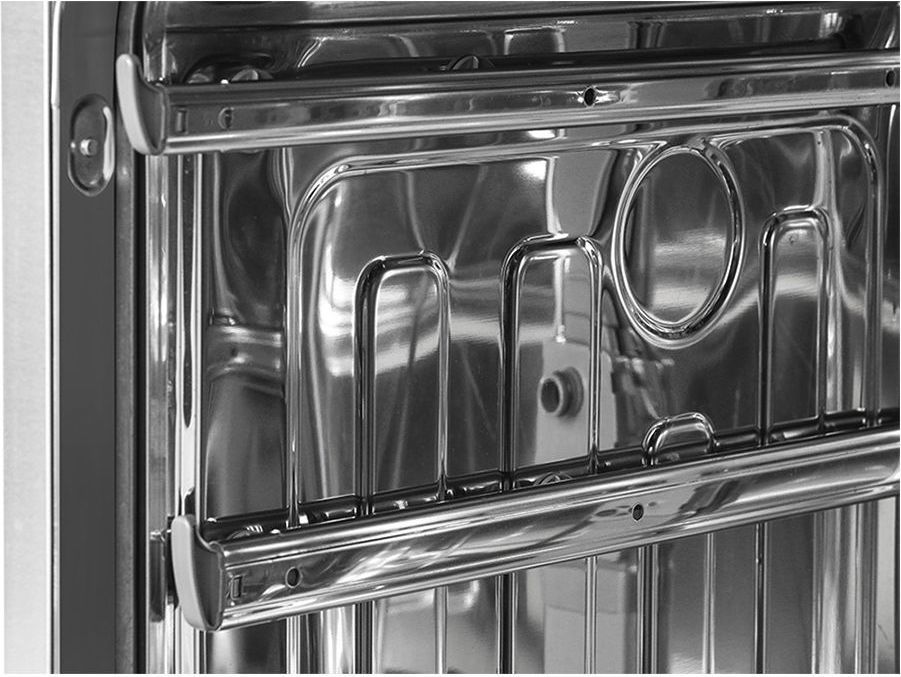 - Модель с высоким классом энергоэффективности А+ и низким уровнем шума имеет возможность встраивания в кухонный гарнитур.