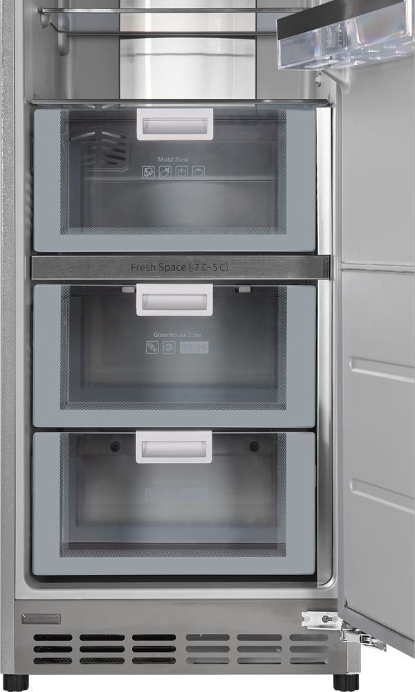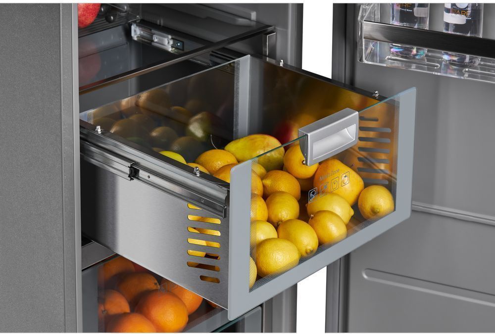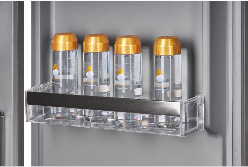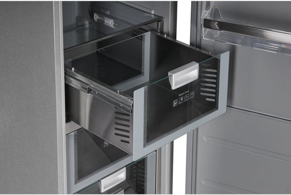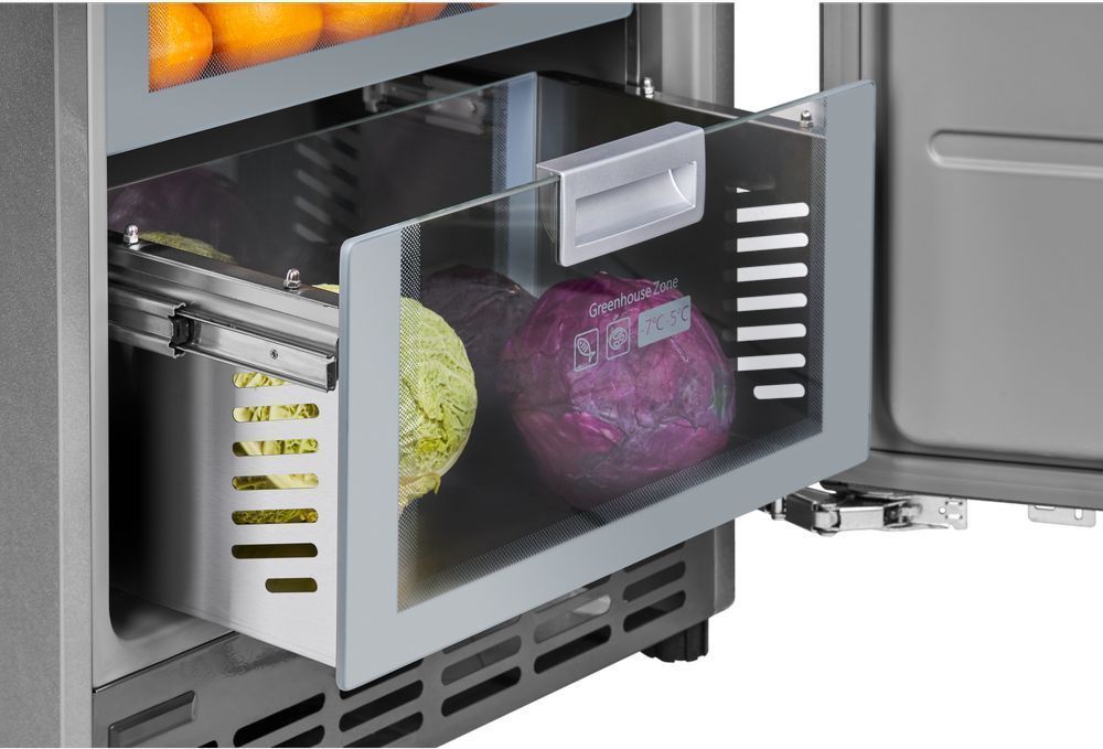 - Холодильник создан для настоящих эстетов и воплощает в себе сочетание элегантного дизайна и функциональности. Внутренняя отделка выполнена в серых тонах. Стеклянные полки и ящики из нержавеющей стали и стекла придают модели стильный внешний вид и обеспечивают идеальные условия для хранения продуктов. Благодаря этим составляющим холодильник становится отличным решением для удобного хранения всех необходимых продуктов.