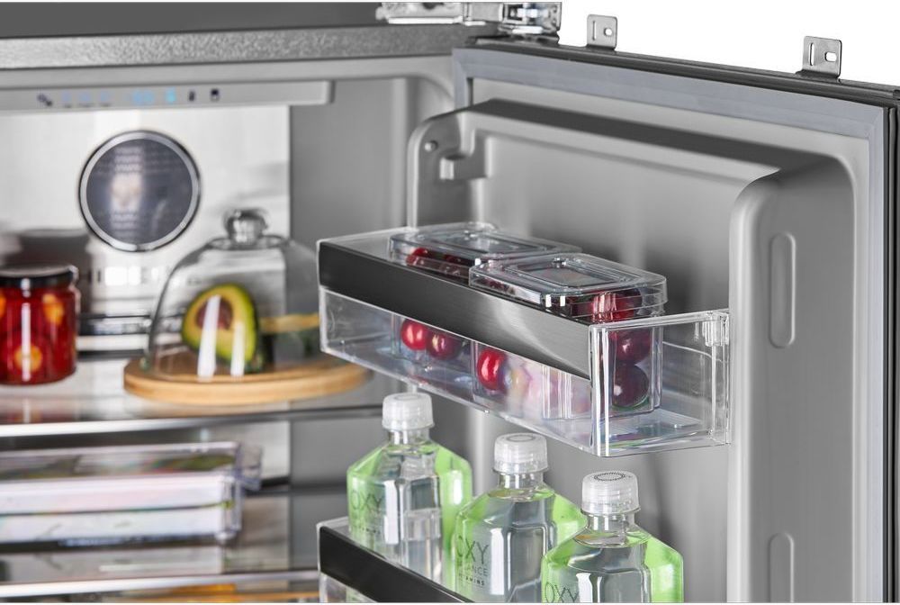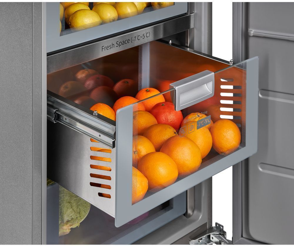- Мультитемпературная зона включает два удобных ящика разных размеров в нижней части холодильника. Она подходит для хранения замороженных деликатесов, свежей рыбы, мяса, грибов и готовых блюд. Настраиваемая температура в ящиках от -7 до +5°С позволит дольше сохранить свежесть продуктов и их полезные свойства.