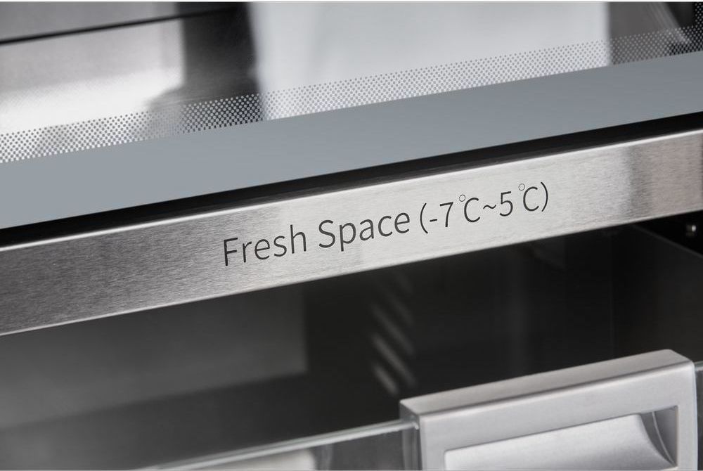 - Режим быстрого охлаждения до -7°С в мультитемпературной зоне обеспечивает легкую заморозку для краткосрочного хранения свежего мяса, рыбы, икры и других продуктов.