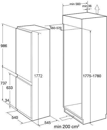 Встраиваемый двухкамерный холодильник Korting KSI 17887 CNFZ