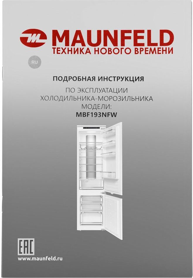 Встраиваемый двухкамерный холодильник Maunfeld MBF193NFW, система Full NoFrost, цвет белый.