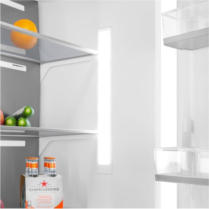 - Великолепное освещение. Светодиодная подсветка даёт равномерный, яркий свет и обеспечивает отличный обзор пространства холодильника и морозильной камеры. Светодиоды потребляют меньше энергии, чем лампы накаливания, и служат намного дольше.