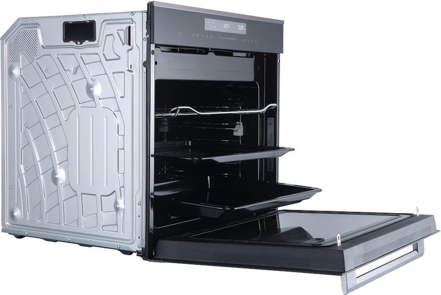 - Тройное остекление дверцы - Специальные материалы стекла обладают свойствами защитного экрана, удерживающего тепло внутри камеры, а конструкция дверцы с применением трех стекол позволяет снизить температуру фронтальной поверхности до минимума. Все это снижает потребление электроэнергии и делает приготовление полностью безопасным.