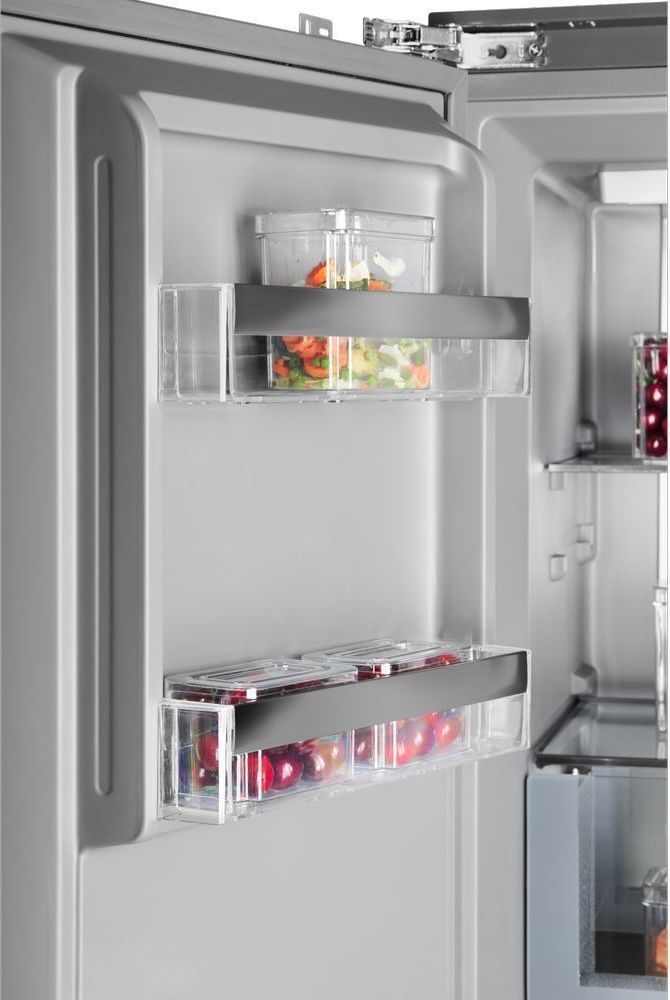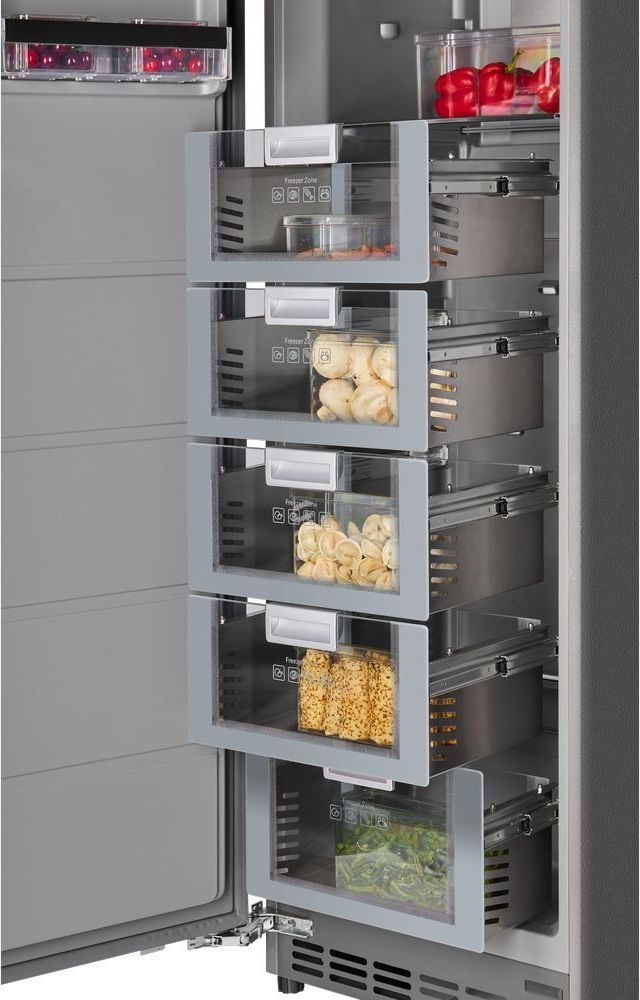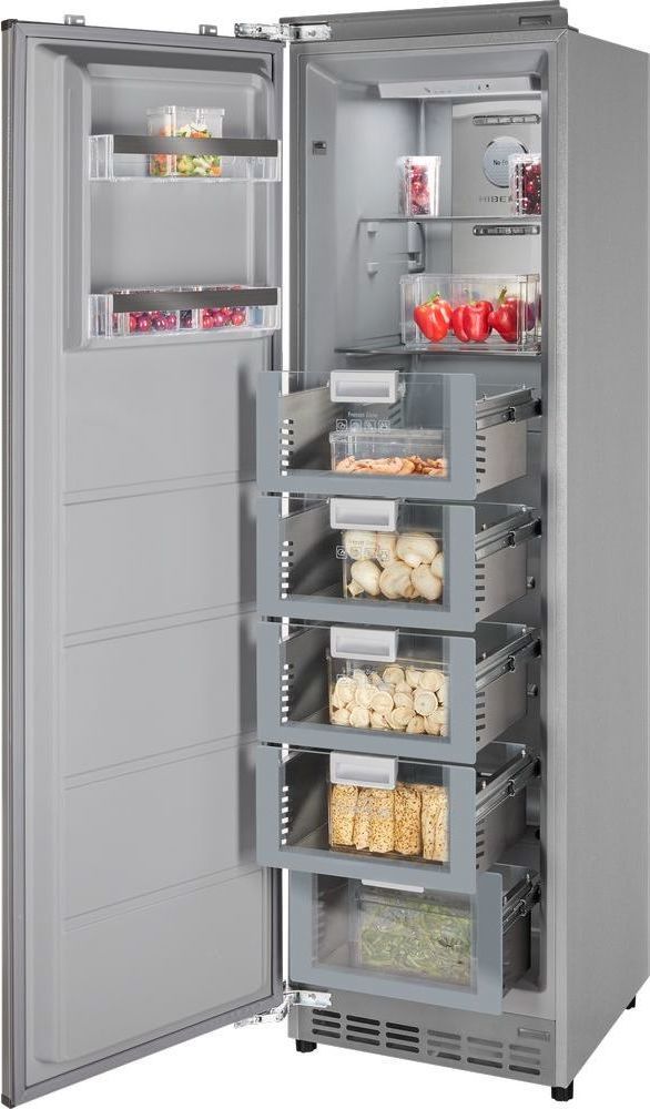 - Уникальность морозильника в том, что его высота составляет 187 см. Он идеален для встраивания в кухонный гарнитур в домах или квартирах с высокими потолками.