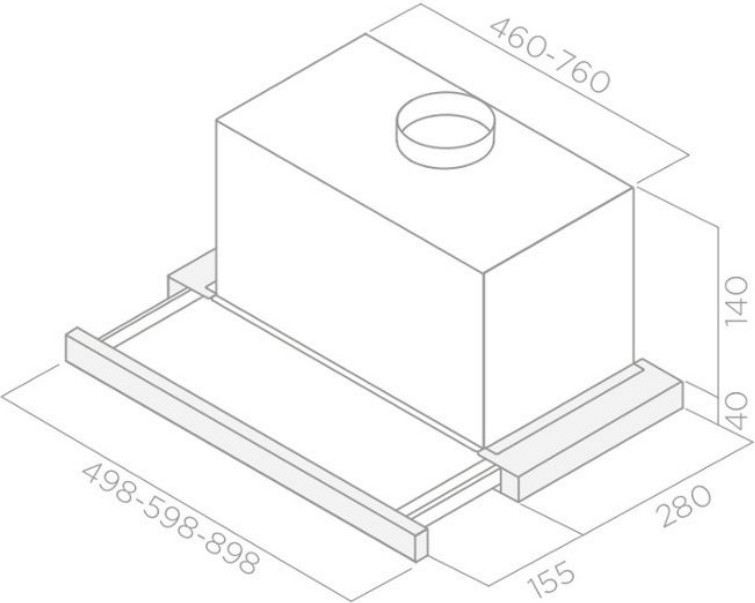 - Прибор включается путем выдвижения передней панели. Простые кнопочные переключатели гарантируют удобное управление тремя скоростями вытяжки и включением/выключением освещения. Алюминиевый фильтр пригоден для мытья в посудомоечной машине. Модель может работать в режимах отвода и рециркуляции. Две яркие светодиодные лампы станут полноценным источником освещения рабочей поверхности.