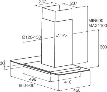 - Яркое освещение рабочей поверхности обеспечивается двумя светодиодными лампами. Вытяжка должна монтироваться на расстоянии не ниже чем 50 см от электрической варочной панели и не ниже чем 65 — от газовой.