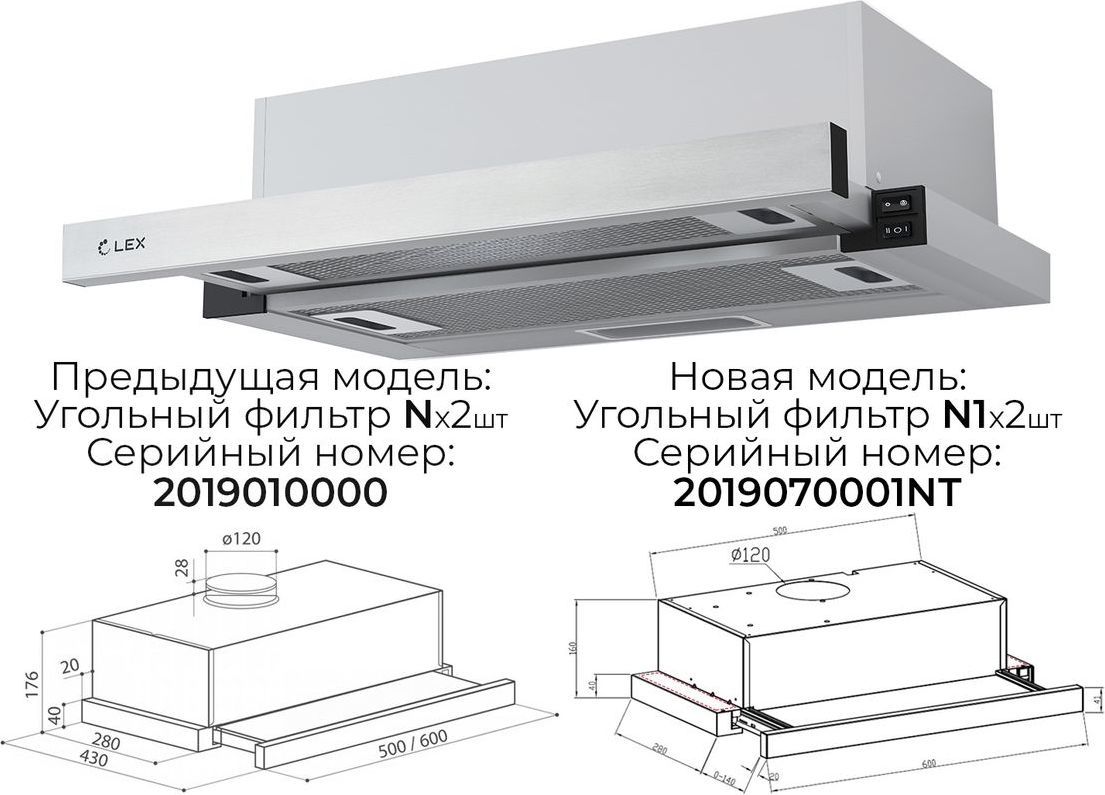 - Фильтр: Алюминиевый (в комплекте), Угольный N (х2) (опция)