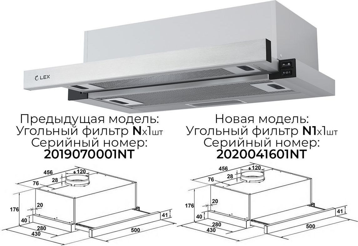- Фильтр: Алюминиевый (в комплекте), Угольный N (опция)