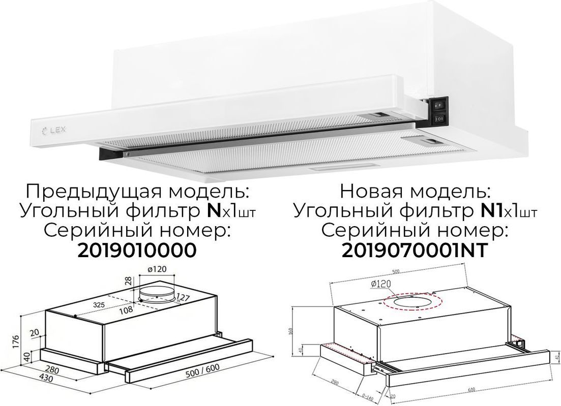 - Фильтр: Алюминиевый (в комплекте), Угольный N (опция)