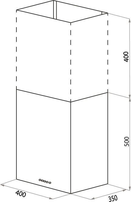 - В зависимости от высоты потолка кухни, вы можете использовать основной корпус или прикрепить дополнительный кожух и получить вытяжку высотой 90 см.