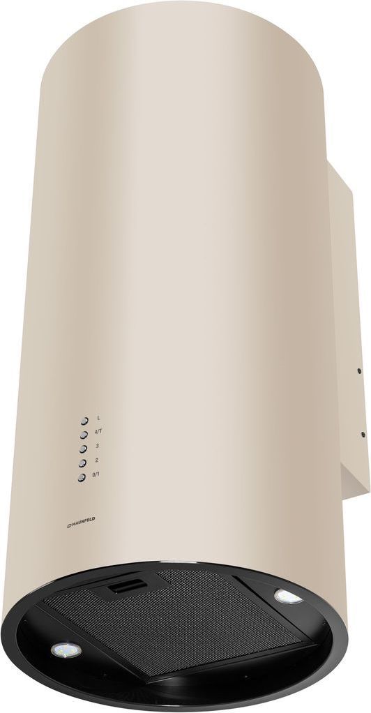 - Корпус цилиндрической формы, сделанный из нержавеющей стали с термостойким покрытием бежевого цвета, монтируется на стену над варочной поверхностью. Специальный многослойный жироулавливающий фильтр, расположенный в нижнем торце, легко снимается и полностью разбирается, что сильно упрощает его чистку