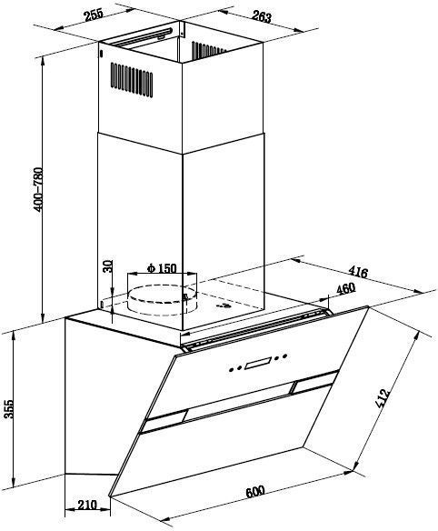 • Наклонная вытяжка с настенным креплением