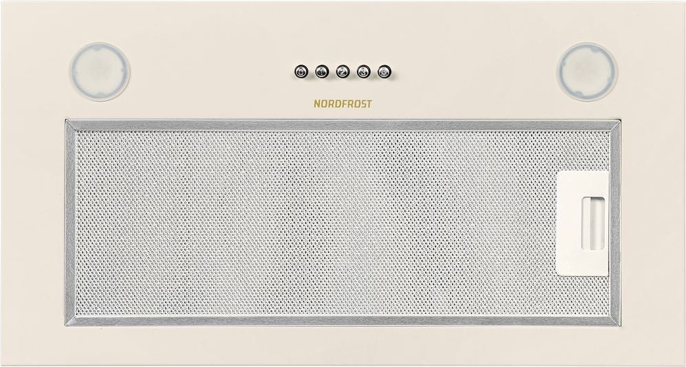 - Компактная встраиваемая вытяжка NORDFROST FB 6060 Y с мощностью двигателя 140 Вт, в бежевом цвете и лаконичном современном дизайне – прекрасное решение для тех, кто хочет сэкономить пространство и предпочитает закрытый кухонный гарнитур.