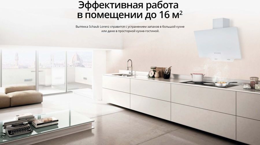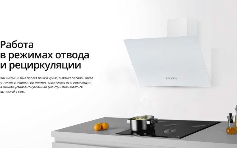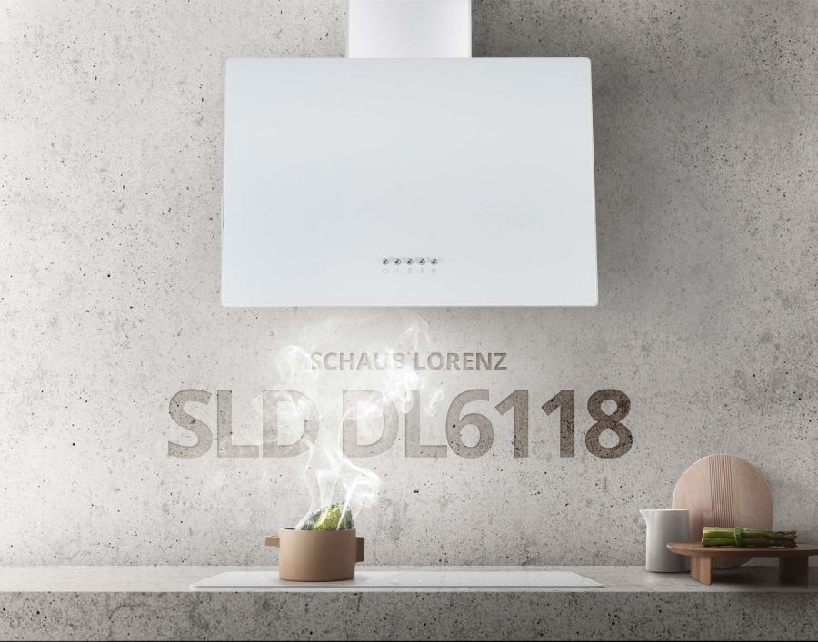 - Наклонная вытяжка Schaub Lorenz SLD DL6118 изготовлена из белого стекла и нержавеющей стали, особый дизайн гармонично впишется в любой интерьер.