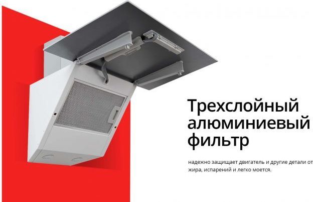 - Вытяжка подключается к вентиляционной системе помещения, для наиболее эффективной работы, отвод воздуха с частичками жира и неприятными запахами происходит через 3-слойный алюминиевый фильтр, который легко мыть вручную или в посудомоечной машине.