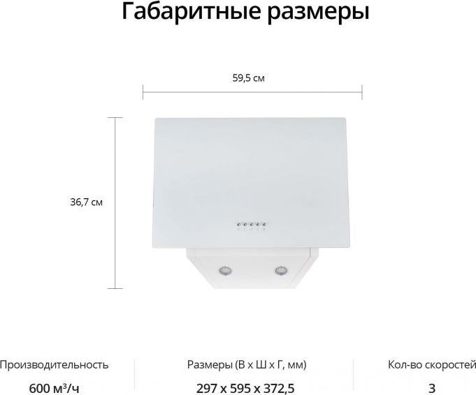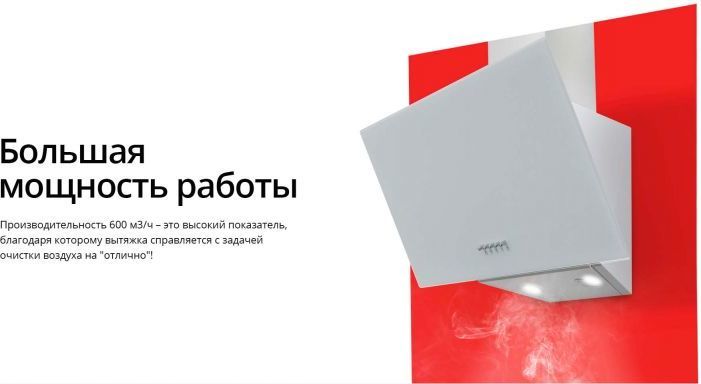- Ширина вытяжки 59,5 см – идеально для кухни любого размера.
